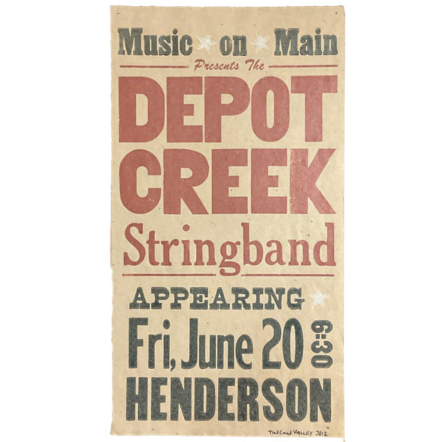 Three-color wood type gig poster.